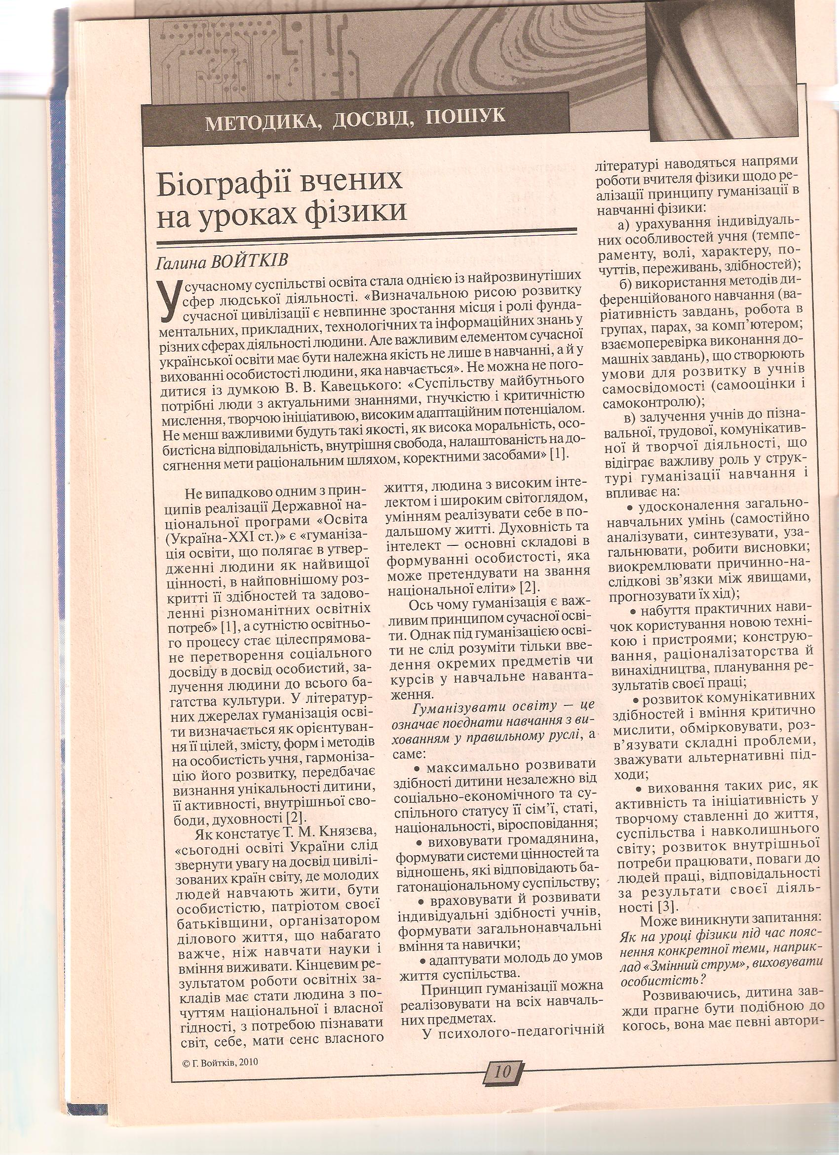 Citation: | 6. Войтків Г.В. Біографії вчених на уроках фізики / Г.В. Войтків // Фізика та астрономія в школі. – 2010. – №5 (80). – С. 10-12. |