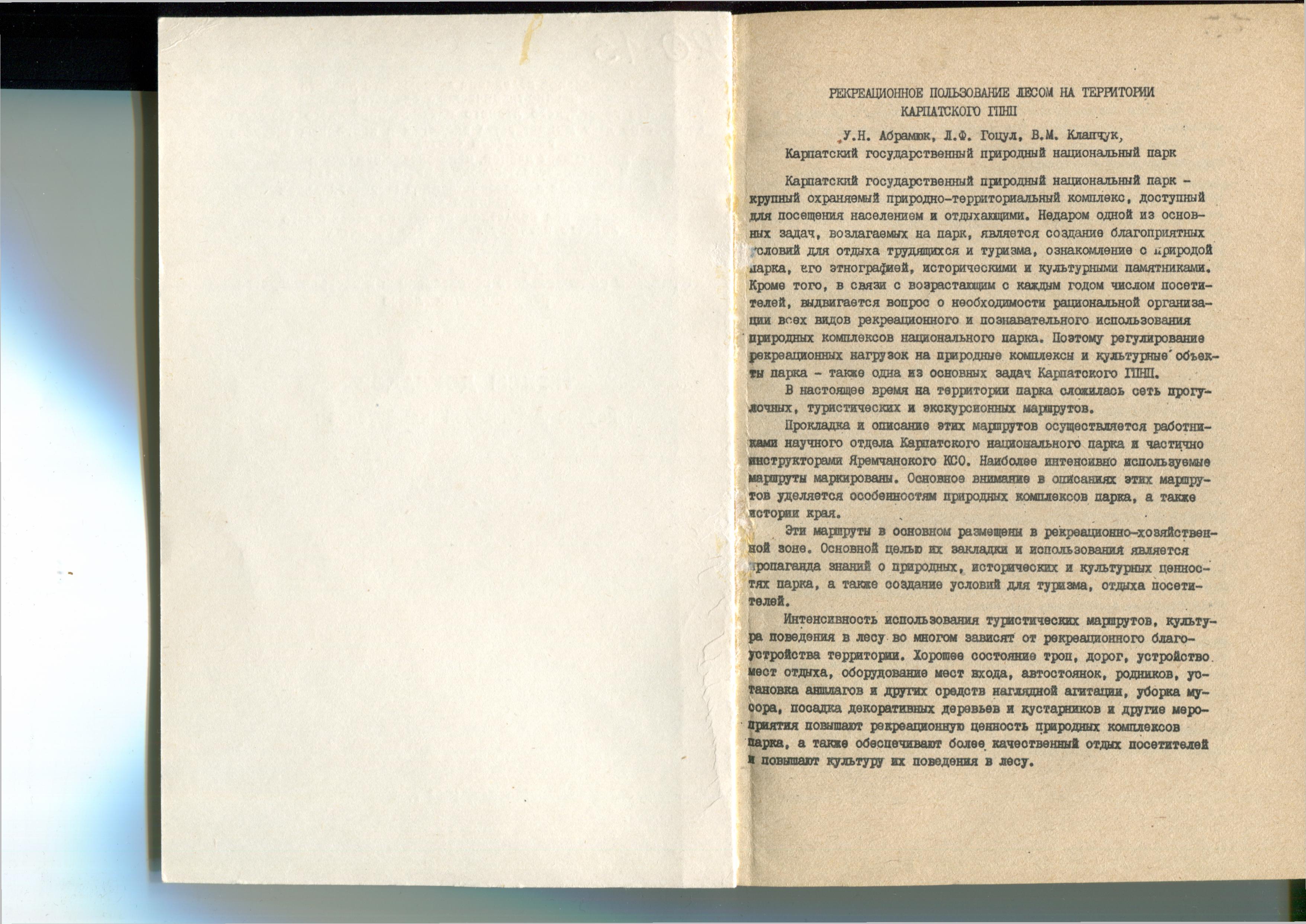 Title: | Рекреационное пользование лесом на территории Карпатского ГПНП |
