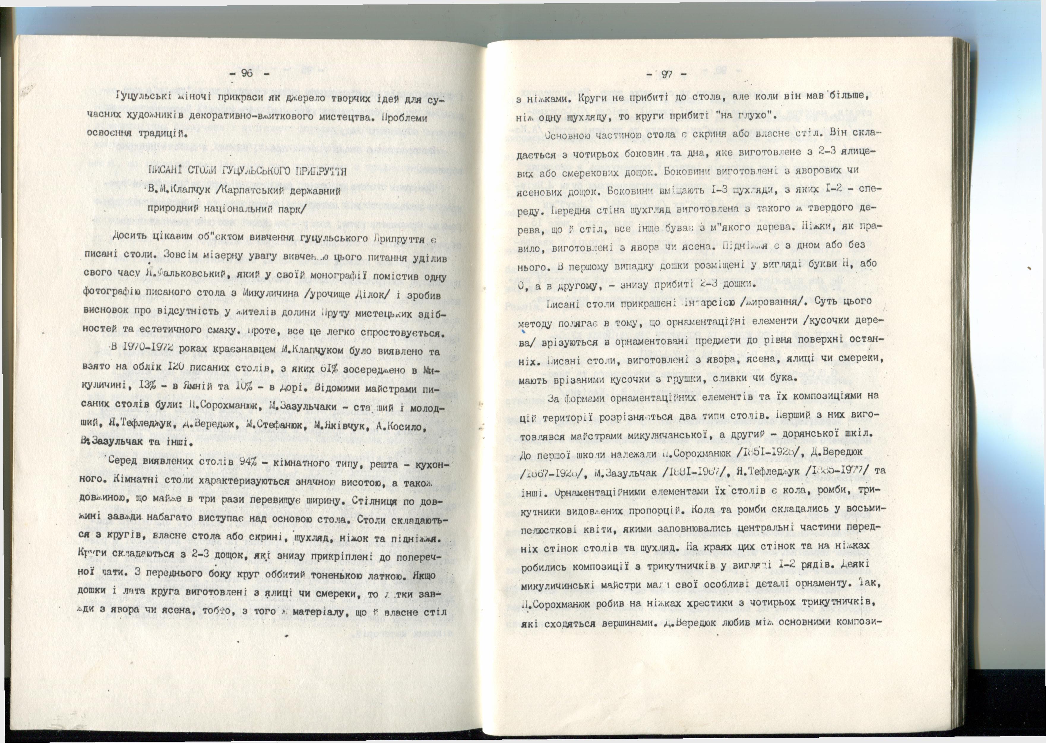 Бібліографічний опис: | Клапчук В.М. Писані столи Гуцульського Припруття / В.М. Клапчук / Зб. тез. доп. міжнар. н.-п. конф. «Проблеми Гуцульщини». – Чернівці-Косів, 1993. – Ч. III. – С. 96–98. |