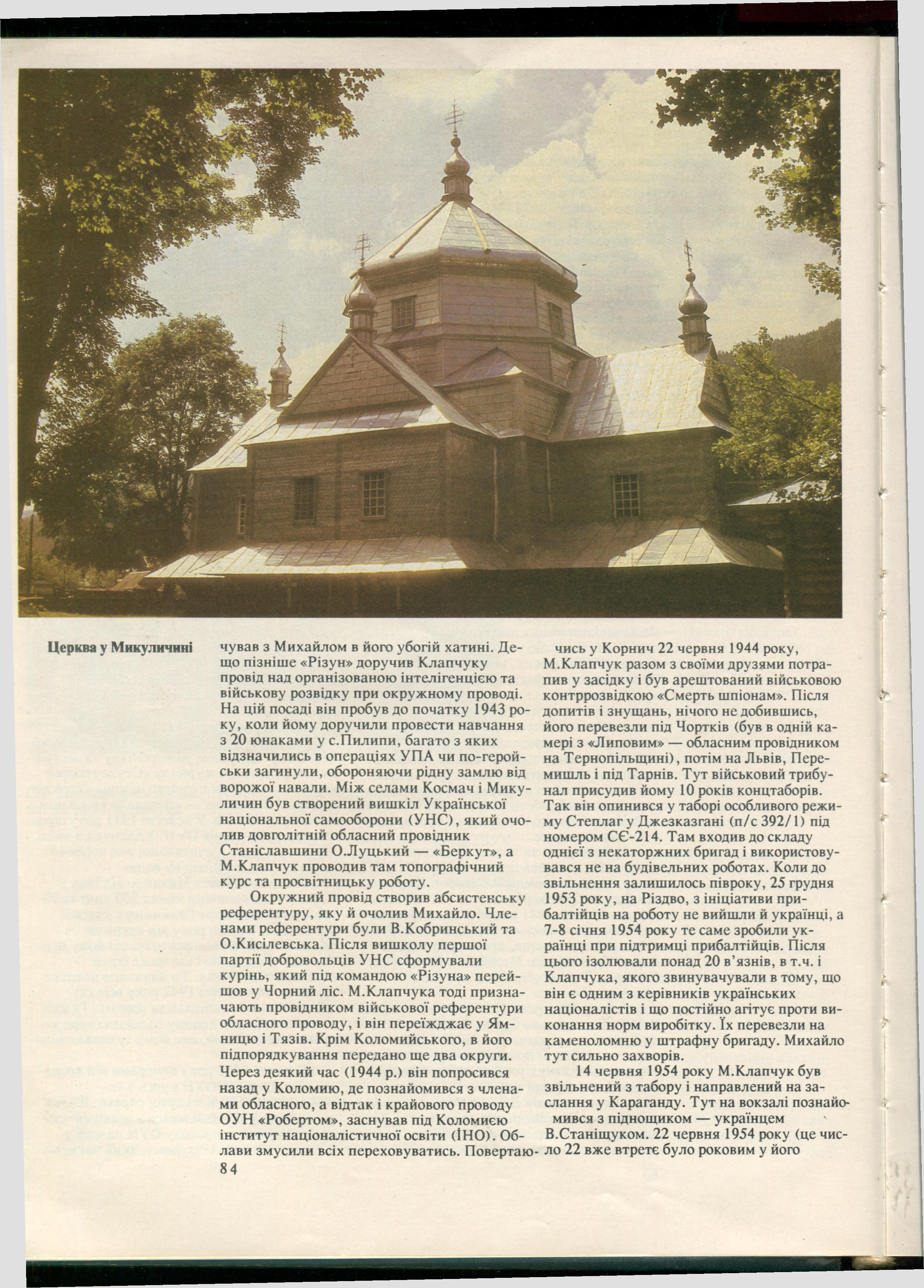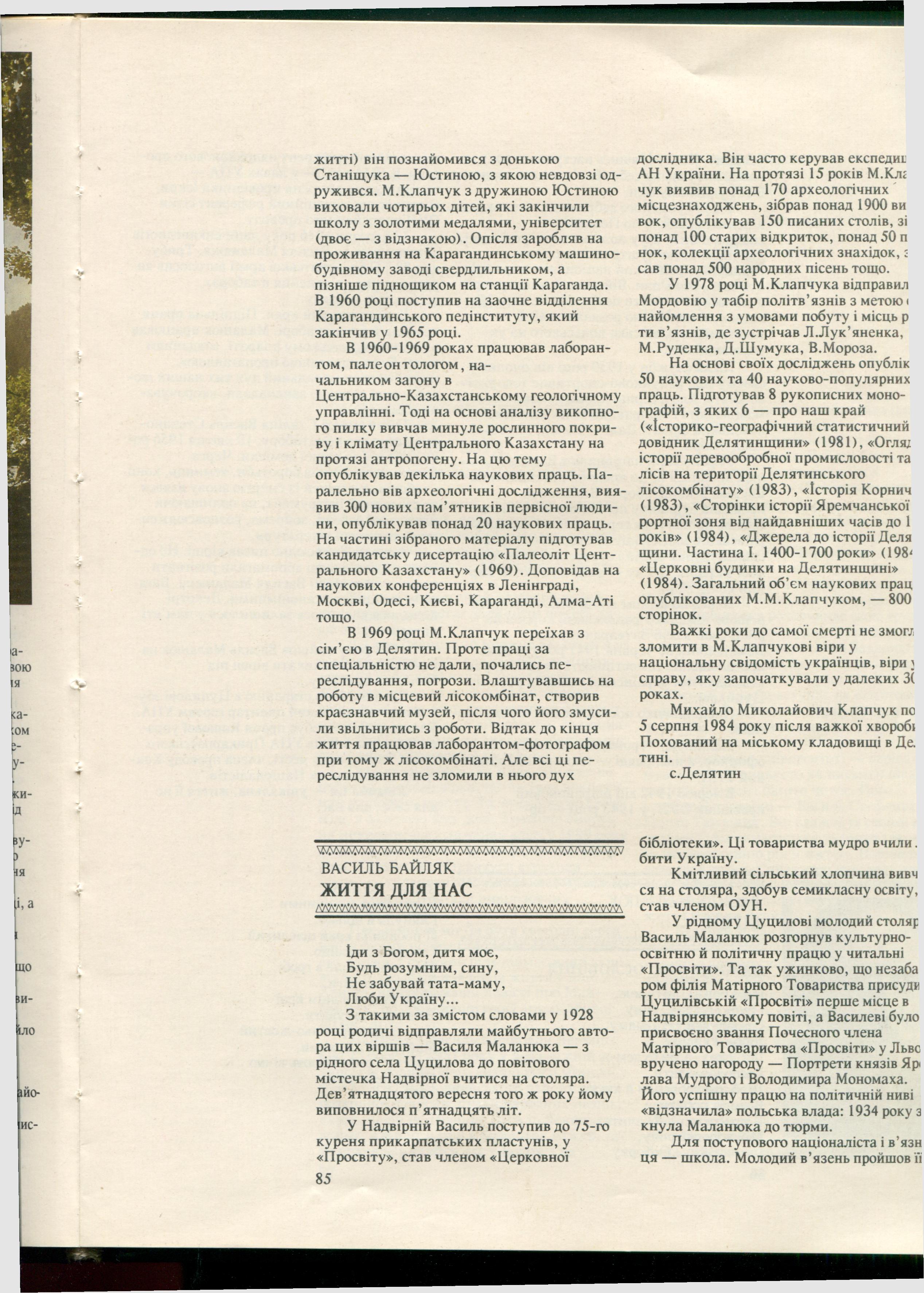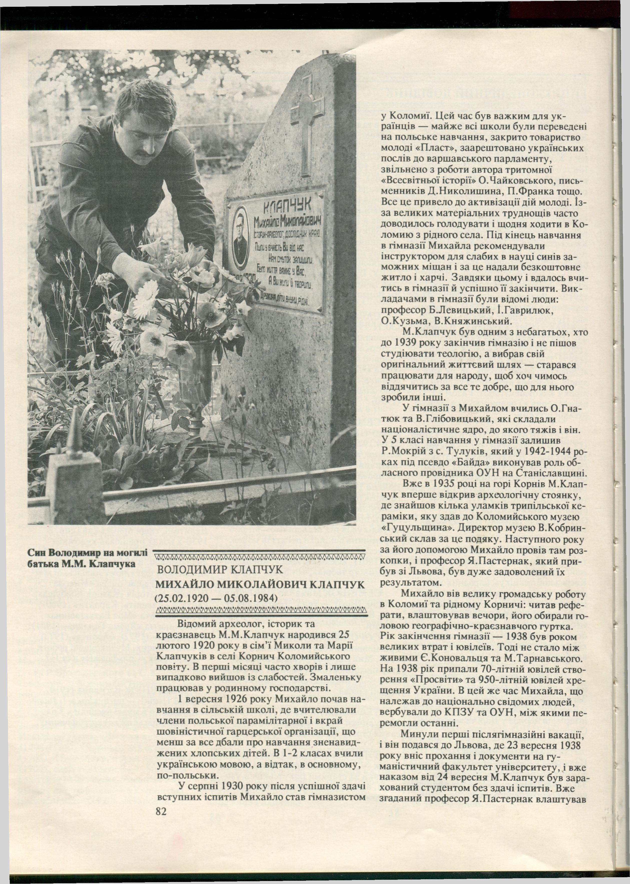 Citation: | Клапчук В. Михайло Михайлович Клапчук (25.02.1920 – 05.08.1984) / В.М. Клапчук / Страгора (Книга про Надвірнянщину). – Львів : Світло і тінь, 1994. – С. 82–85. |