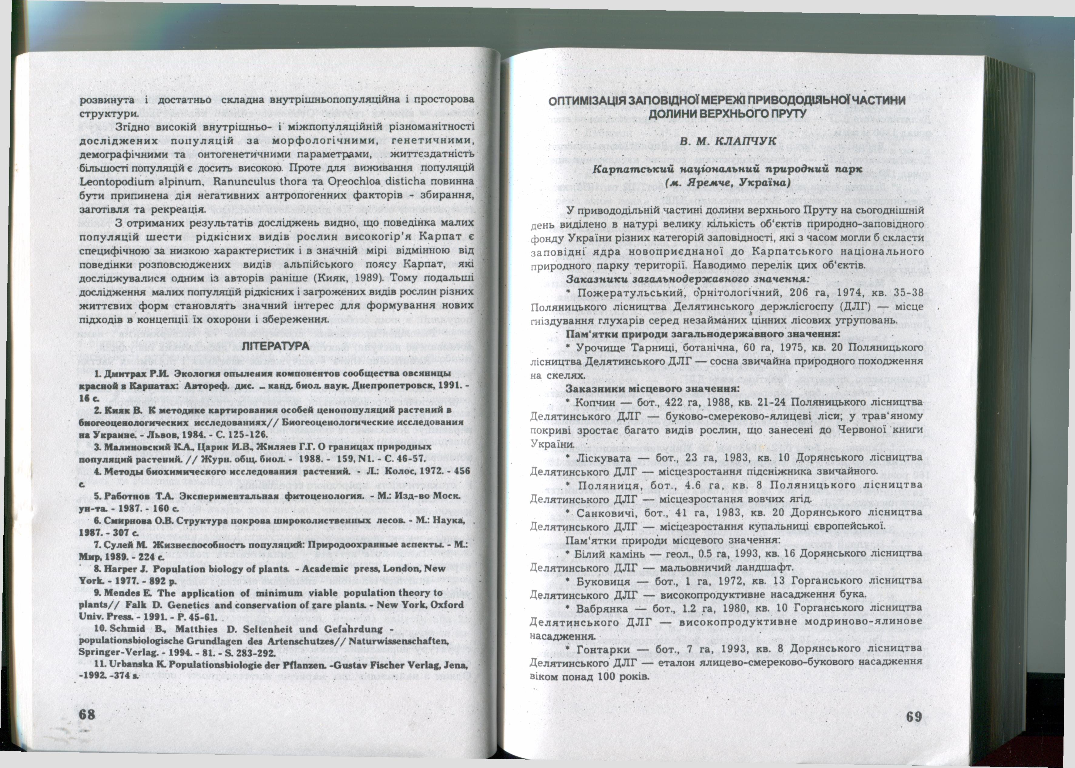 | Citation: | Клапчук В.М. Оптимізація заповідної мережі привододільної частини долини верхнього Пруту / В.М. Клапчук / Мат. міжнар. н.-п. конф., присв. 30-річчю Карпатського біосферного заповідника «Карпатський регіон і проблеми сталого розвитку». – Рахів, 1998. – С. 69–73. |