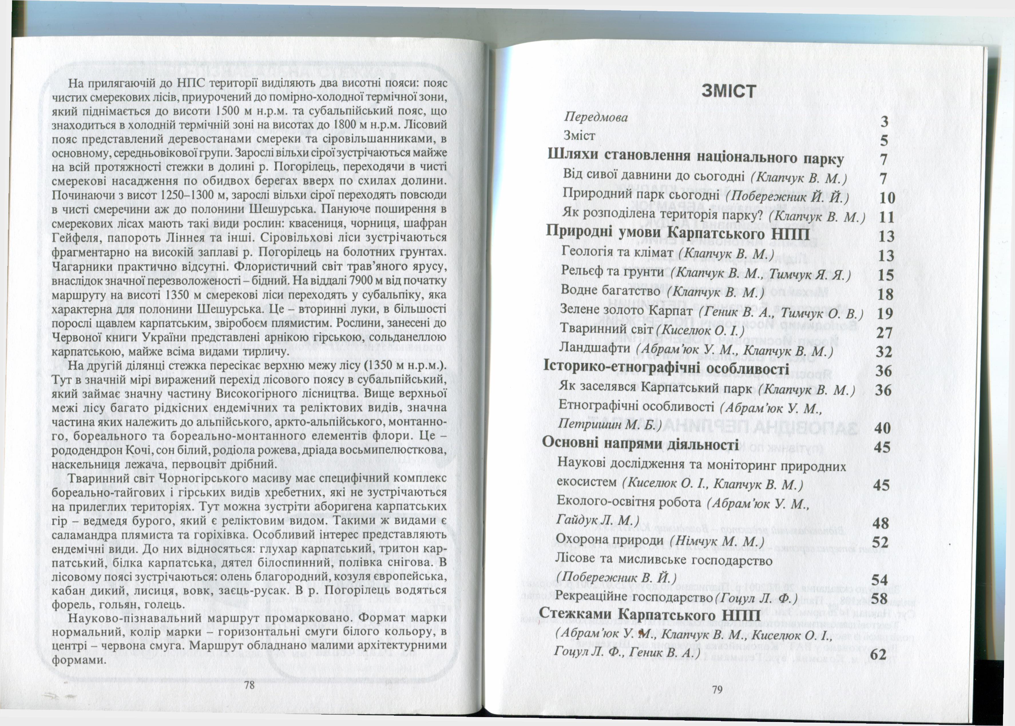 Citation: | Клапчук В.М. Заповідна перлина Карпат : Путівник по Карпатському НПП / [відп. ред. В.М. Клапчук]. – Коломия : Видавничо-поліграфічне товариство «Вік», 2001. – 96 с. |