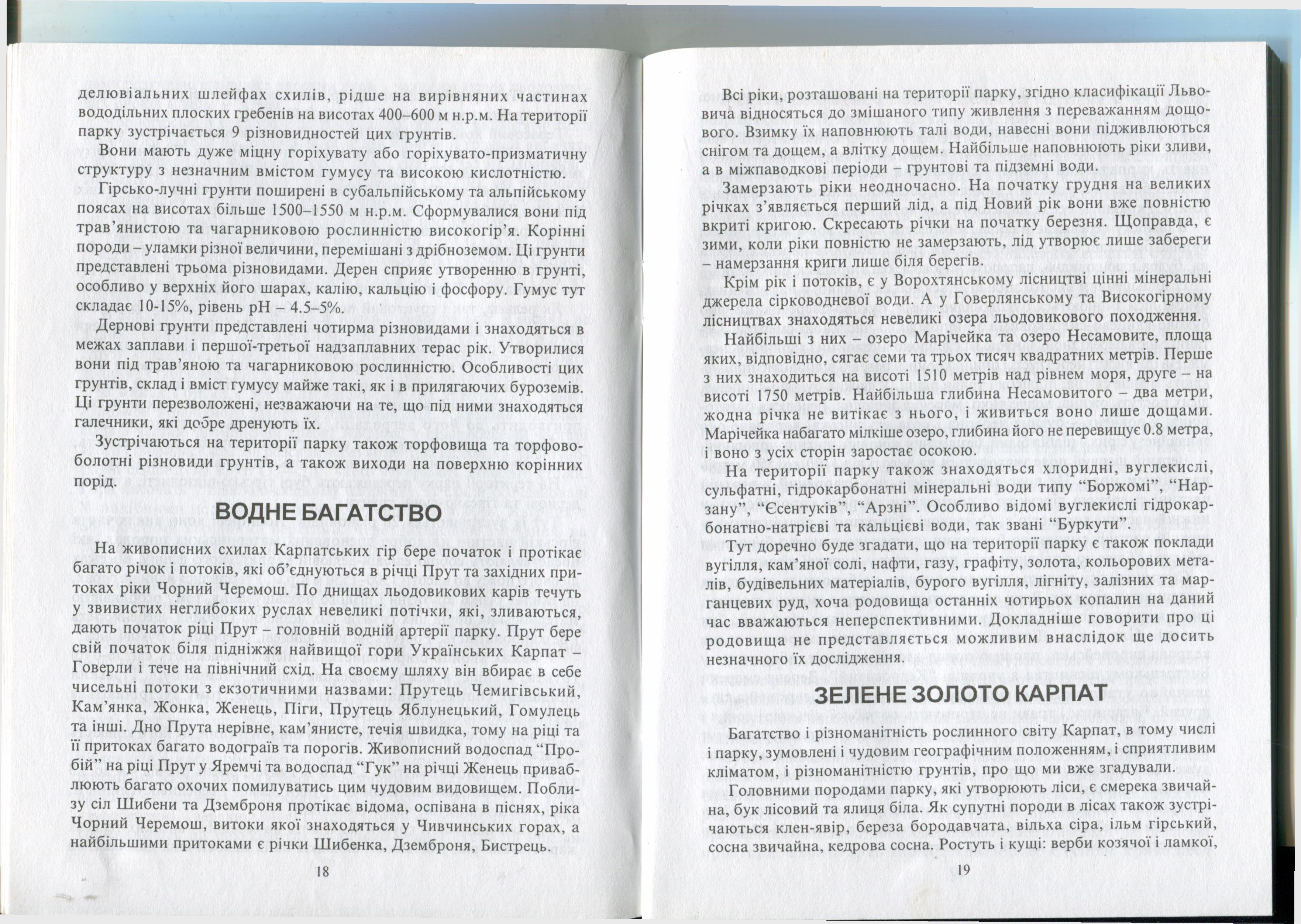 Бібліографічний опис: Клапчук В.М. Водне багатство / В.М. Клапчук / Заповідна перлина Карпат : Путівник по Карпатському НПП. – Коломия : Видавничо-поліграфічне товариство «Вік», 2001. – С. 18–19.