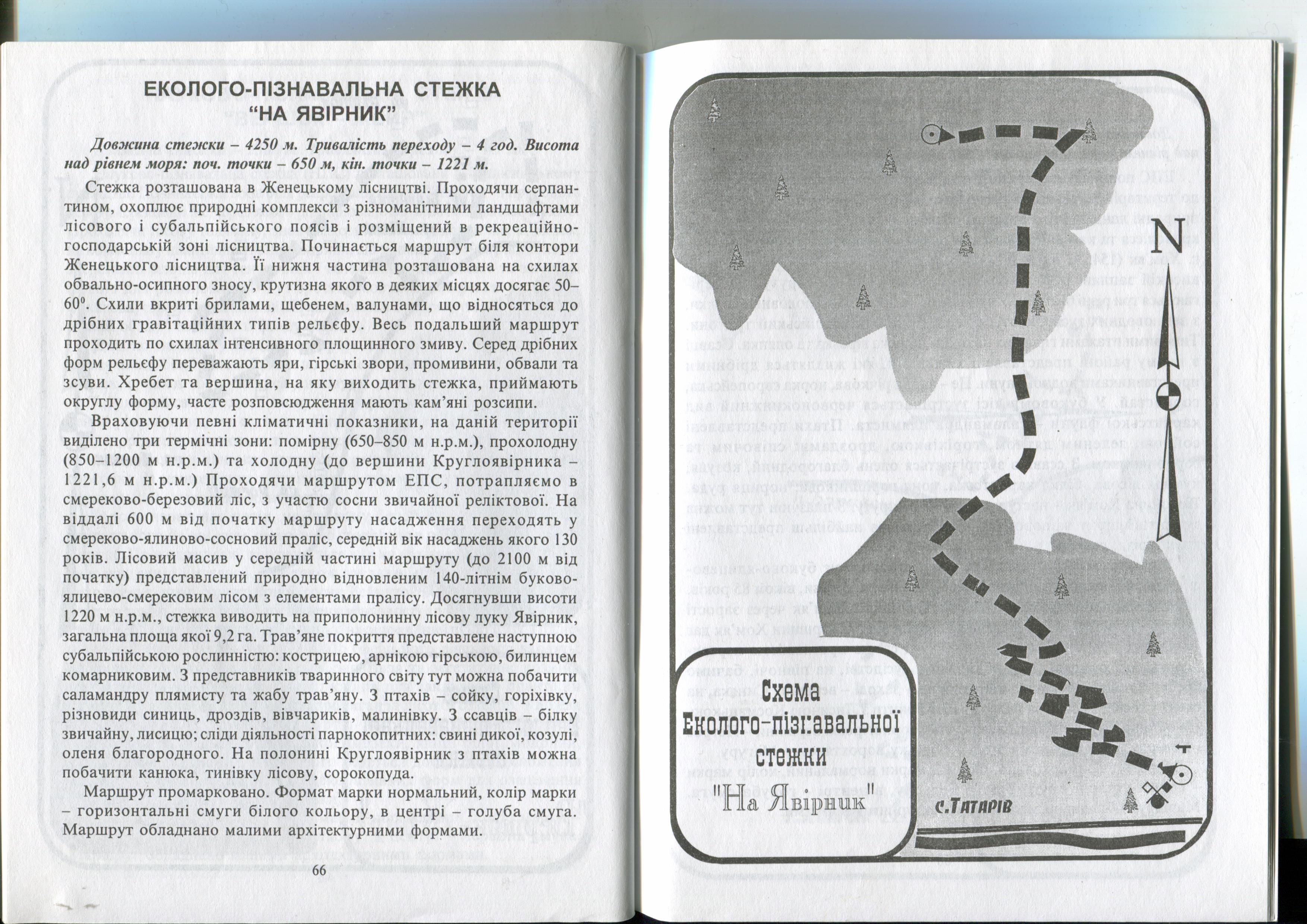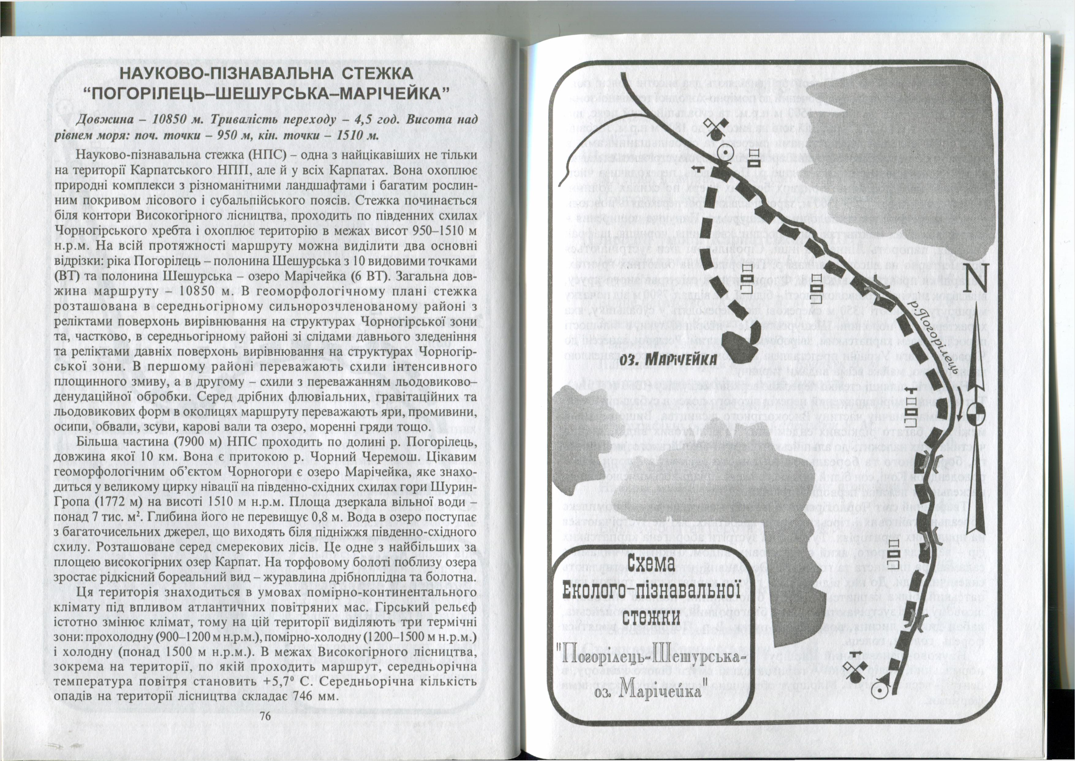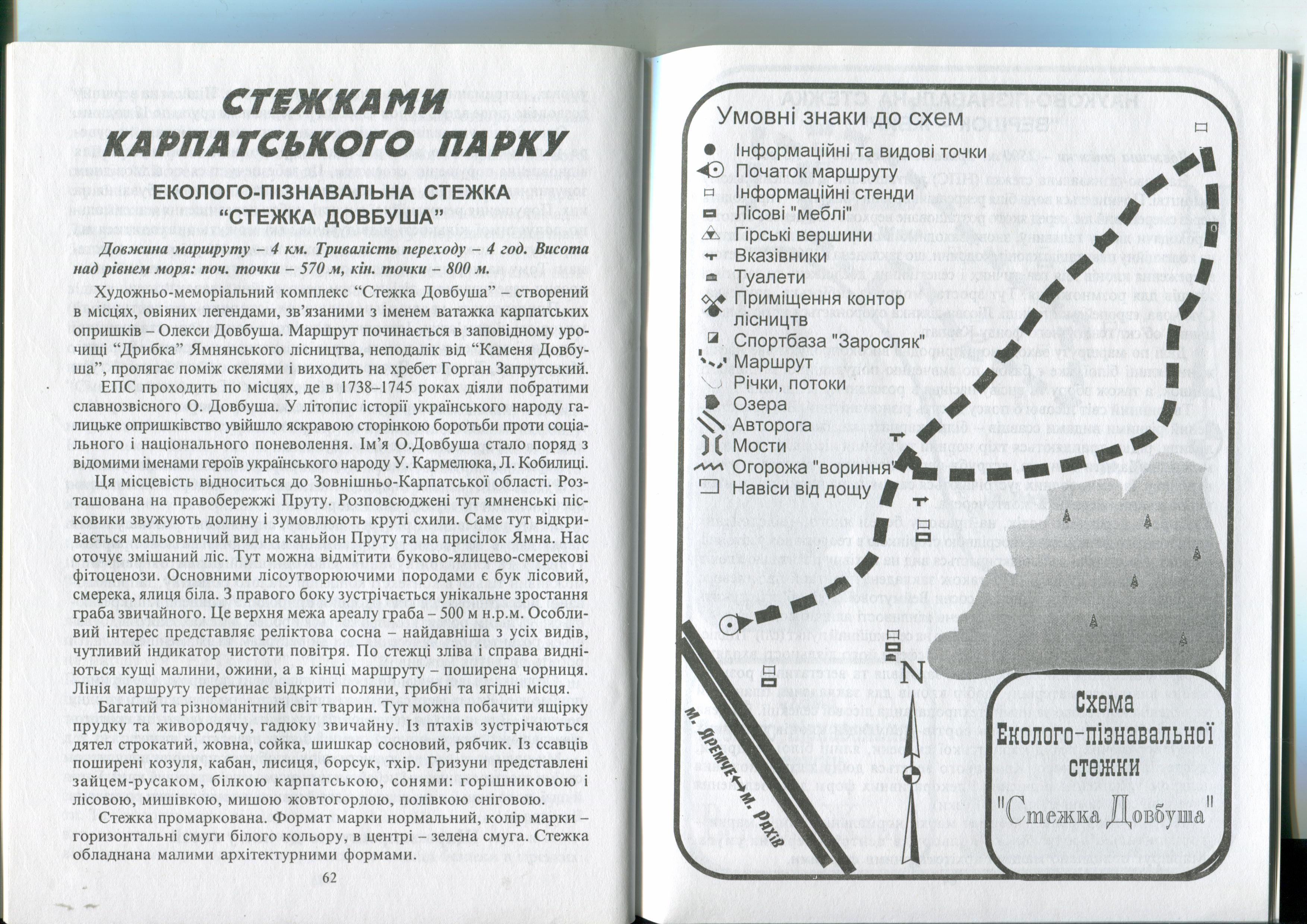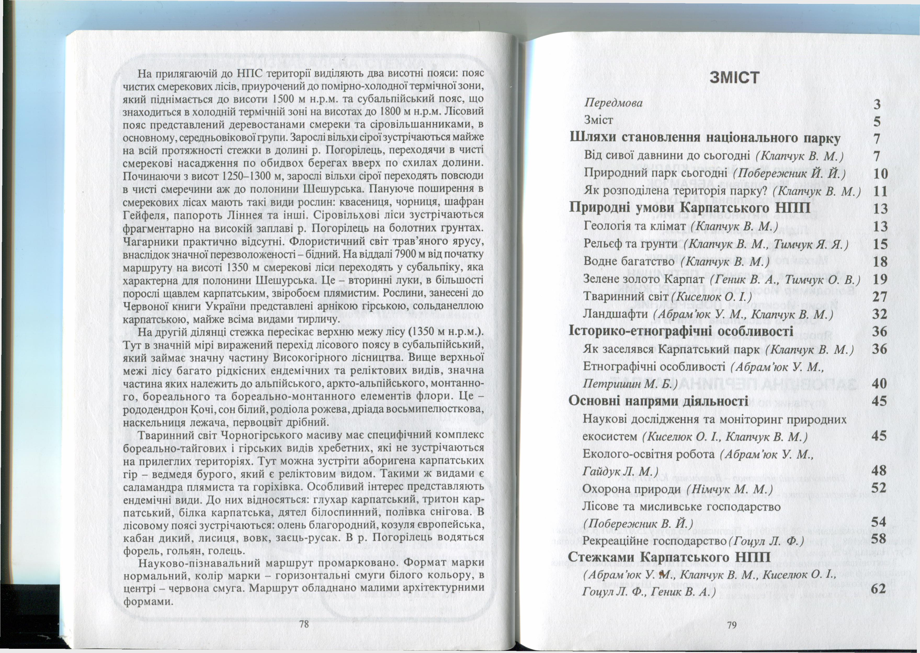 Citation: | Абрам’юк У.М. Стежками Карпатського НПП / [Абрам’юк У.М., Клапчук В.М., Киселюк О.І., Гоцул Л.Ф., Геник В.А.] / Заповідна перлина Карпат : Путівник по Карпатському НПП. – Коломия : Видавничо-поліграфічне товариство «Вік», 2001. – С. 62–78. |