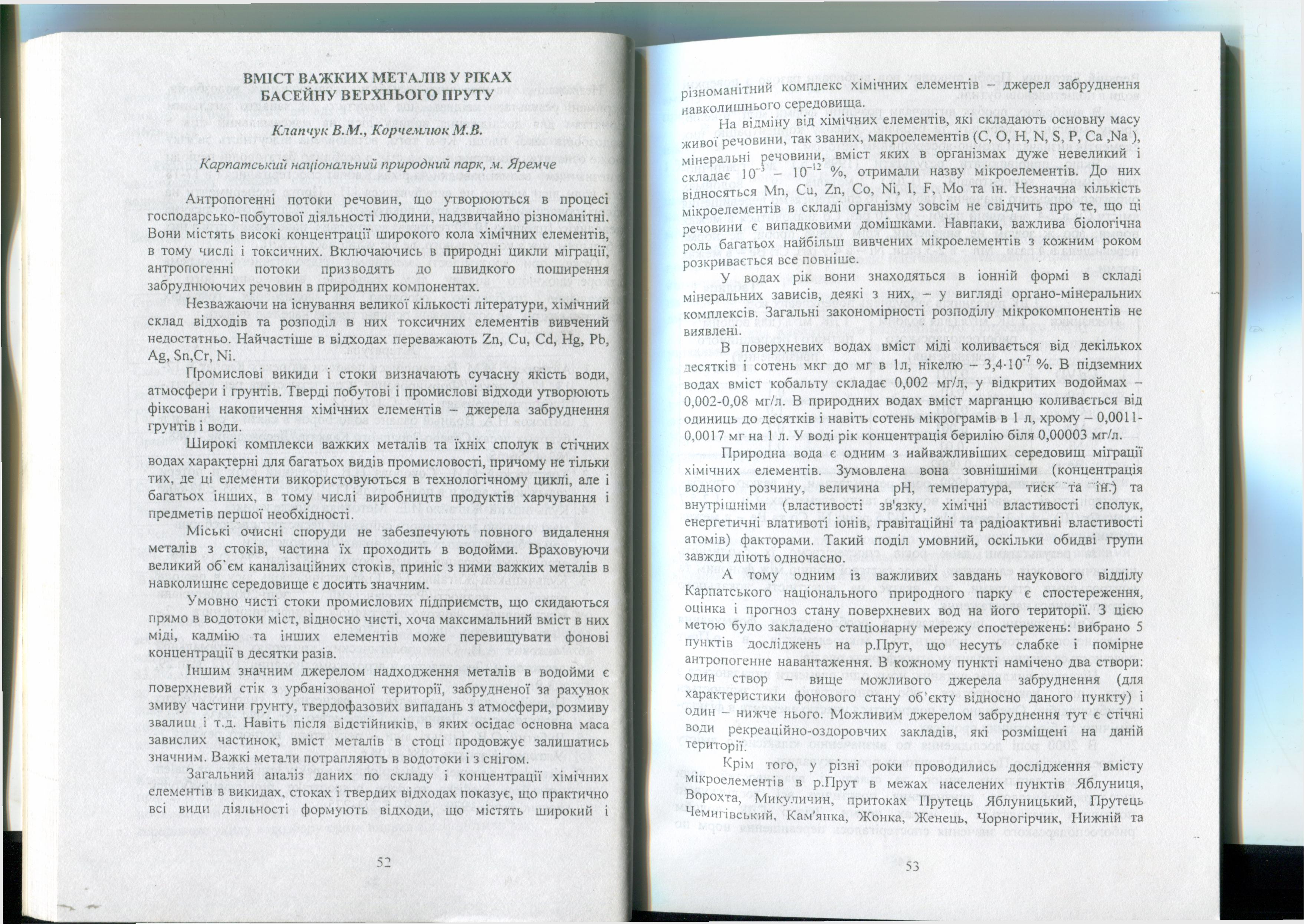 Title: | Вміст важких металів у ріках басейну верхнього Пруту |
