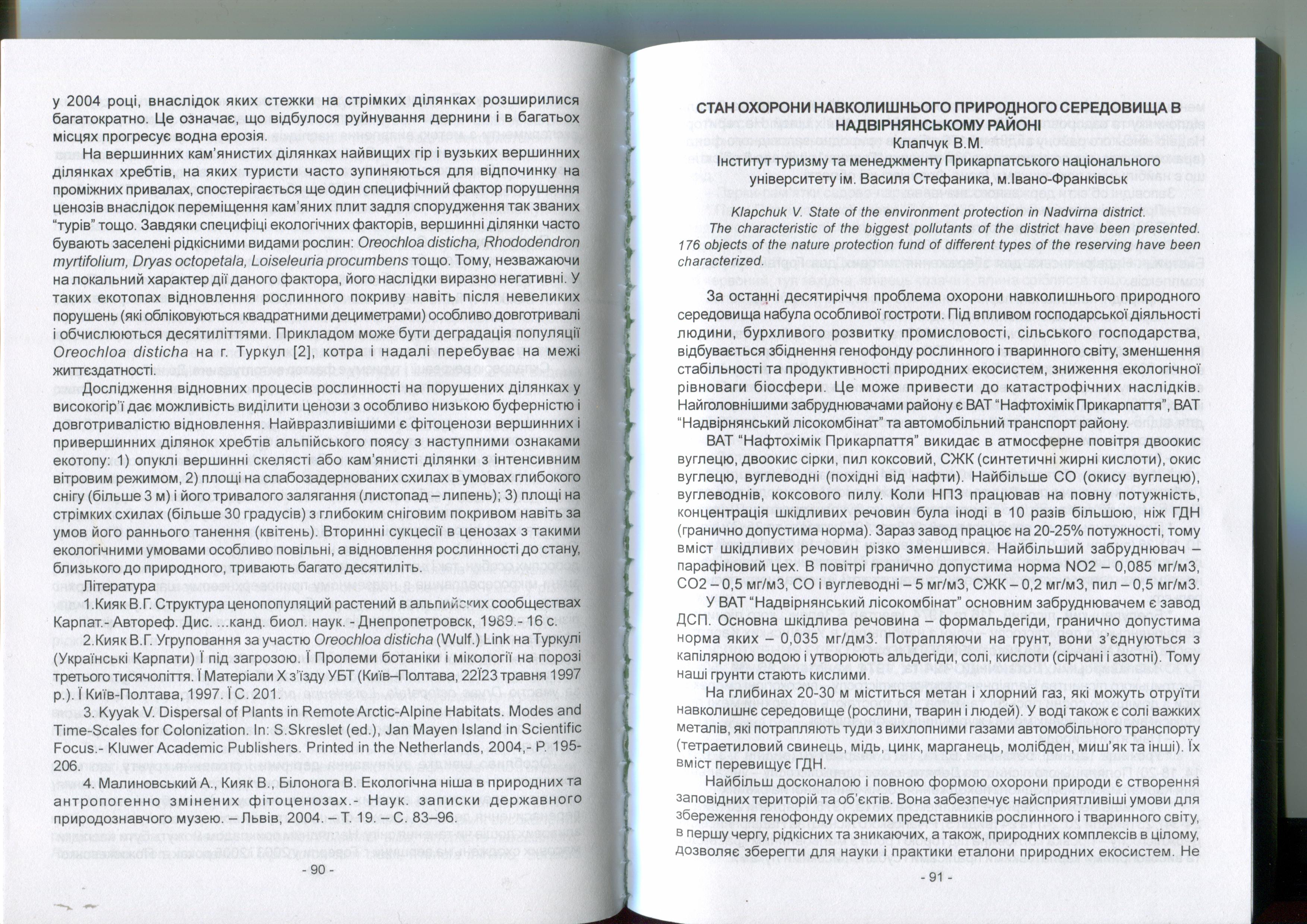 Citation: | Клапчук В.М. Стан охорони навколишнього природного середовища в Надвірнянському районі / В.М. Клапчук / Наукові дослідження на об’єктах природно-заповідного фонду Карпат та стан збереження природних екосистем в контексті сталого розвитку : Мат. міжнар. н.-п. конф., присв. 25-річчю КНПП. – Яремче, 2005. – С. 91–93. |